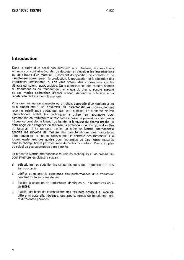 ISO 10375:1997 - Essais non destructifs -- Contrôle par ultrasons - - Caractérisation des traducteurs et des champs acoustiques