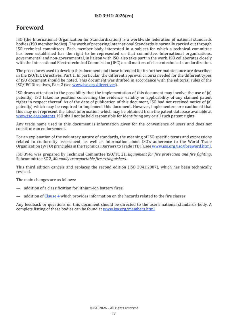 Related to portable fire extinguishers, complementing ISO 3941 by specifying testing and performance requirements.IEC Electropedia and ISO Online Browsing Platform