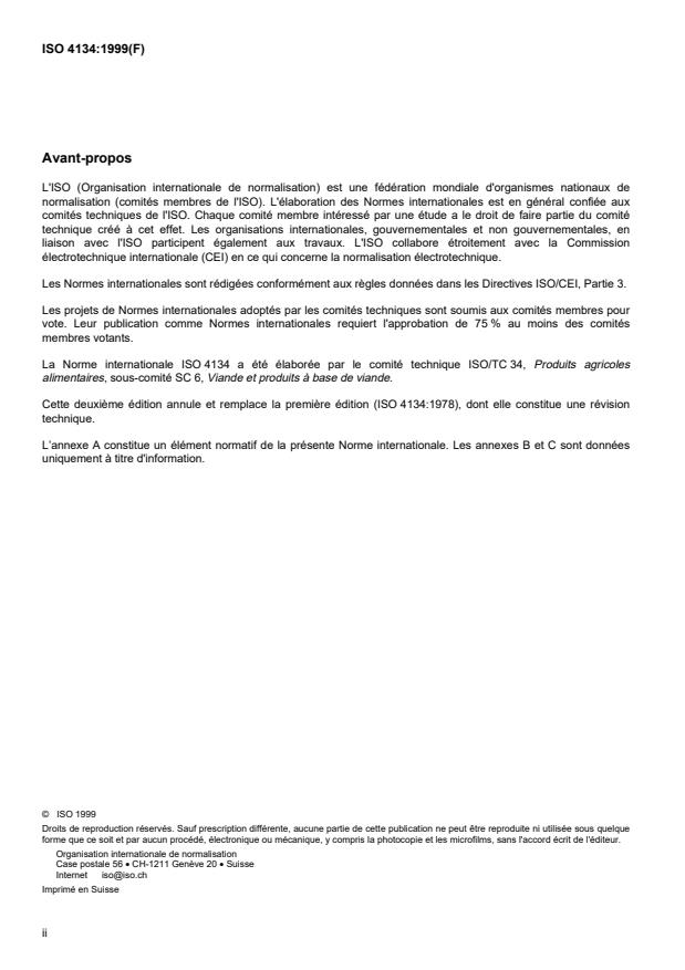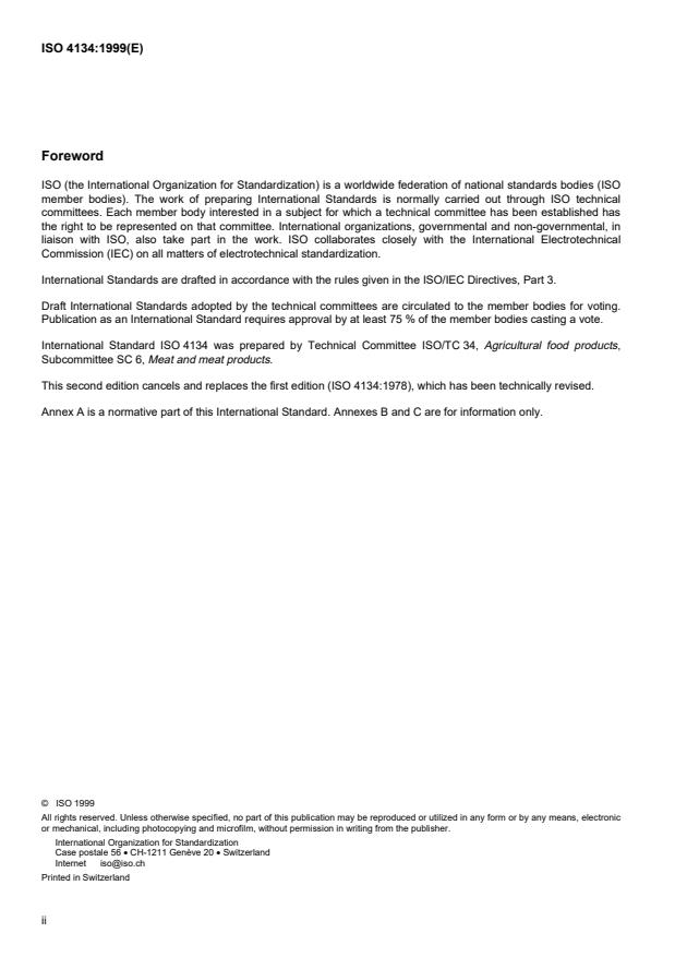 ISO 4134:1999 is classified under the following ICS (International Classification for Standards) categories: 67.120.10 - Meat and meat products. The ICS classification helps identify the subject area and facilitates finding related standards.