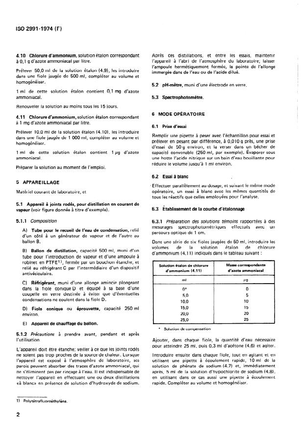 4.10 Chlorure d’ammonium, solution étalon correspondant Après ces distillations, et entre les essais, maintenir