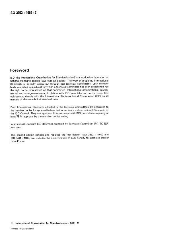 ISO 3852:1988 - Iron ores -- Determination of bulk density