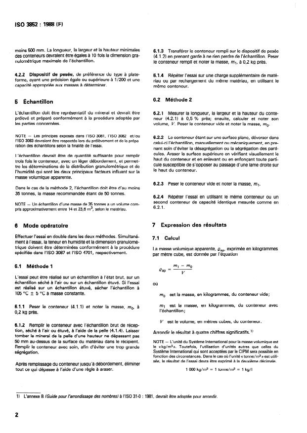 ISO 3852:1988 - Minerais de fer -- Détermination de la masse volumique apparente