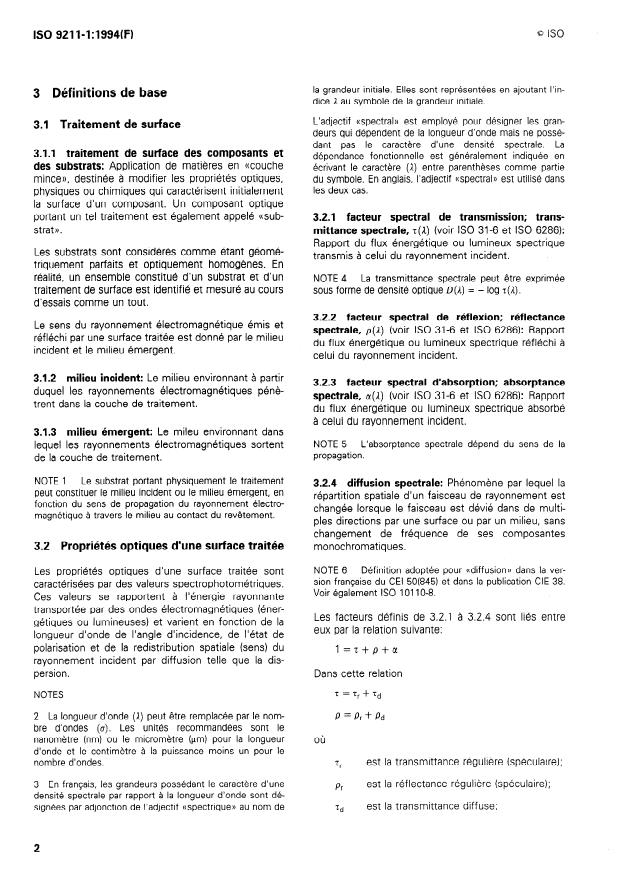 ISO 9211-1:1994 - Optique et instruments d'optique -- Traitements optiques