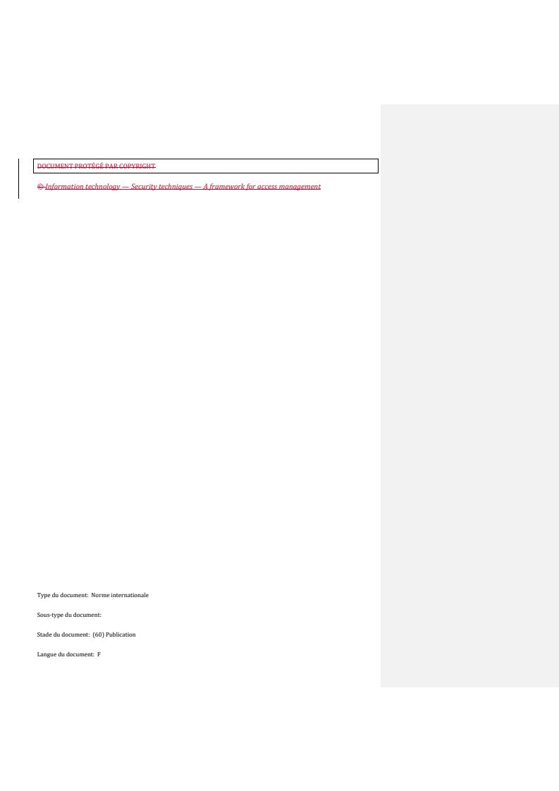 (Main)Information technology - Security techniques - A framework for access management