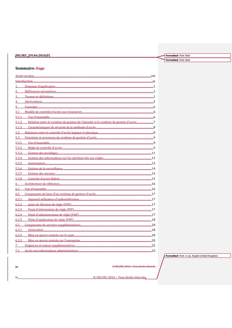 REDLINE ISO/IEC 29146:2016 - Technologies de l'information — Techniques de sécurité — Cadre pour la gestion de l'accès Released:4. 05. 2023