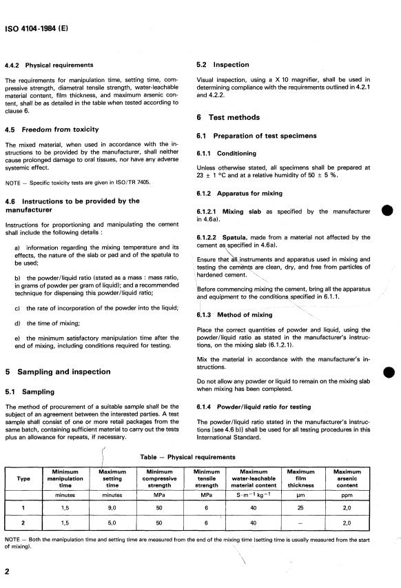 ISO 4104:1984 is a standard published by the International Organization for Standardization (ISO). Its full title is "Dental zinc polycarboxylate cements". This standard covers: Dental zinc polycarboxylate cements