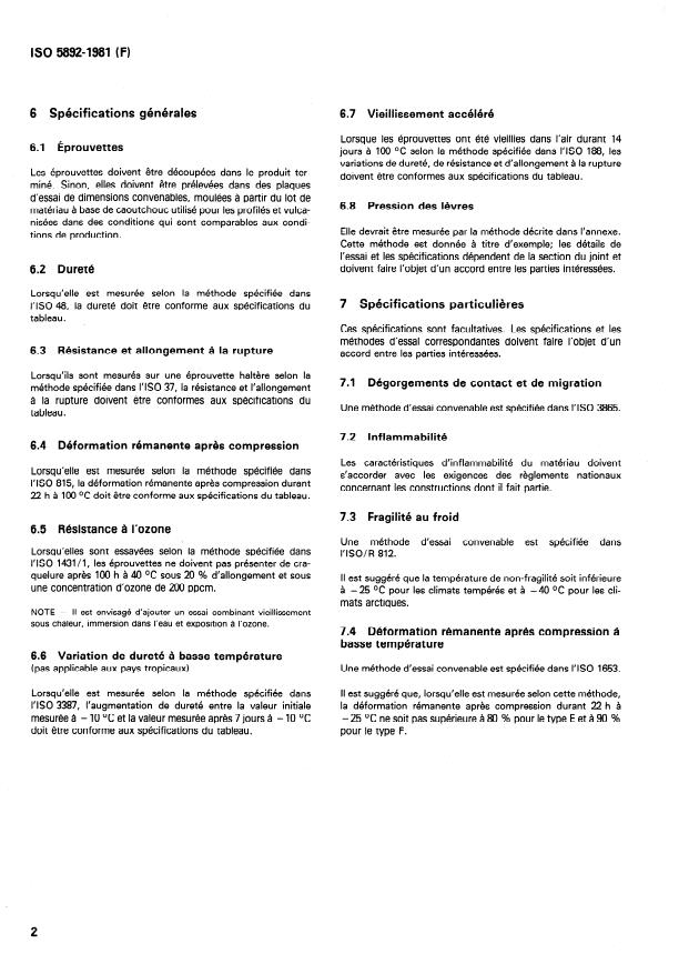 ‘ISO 143111, Caoutchouc vulcanise - Resistance au cra- défauts de surface importants, ni d’irrégularités dimensionnel-