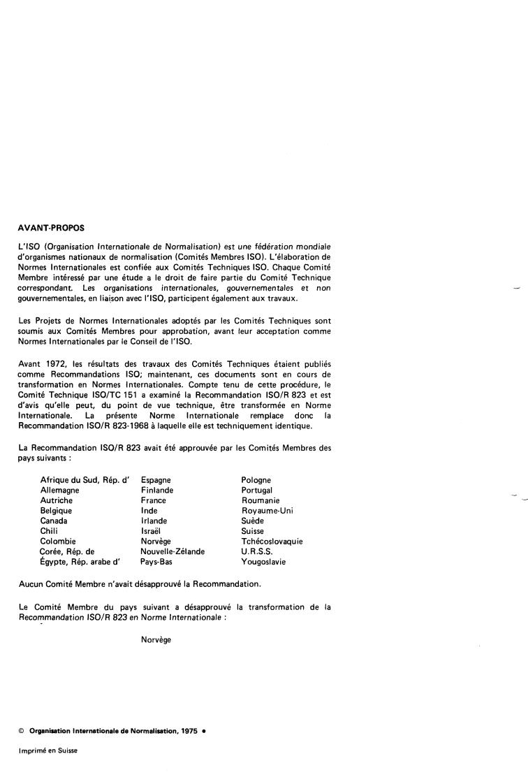 replaces IS0 Recommendation R 823-1968 to which it is technically identical.
