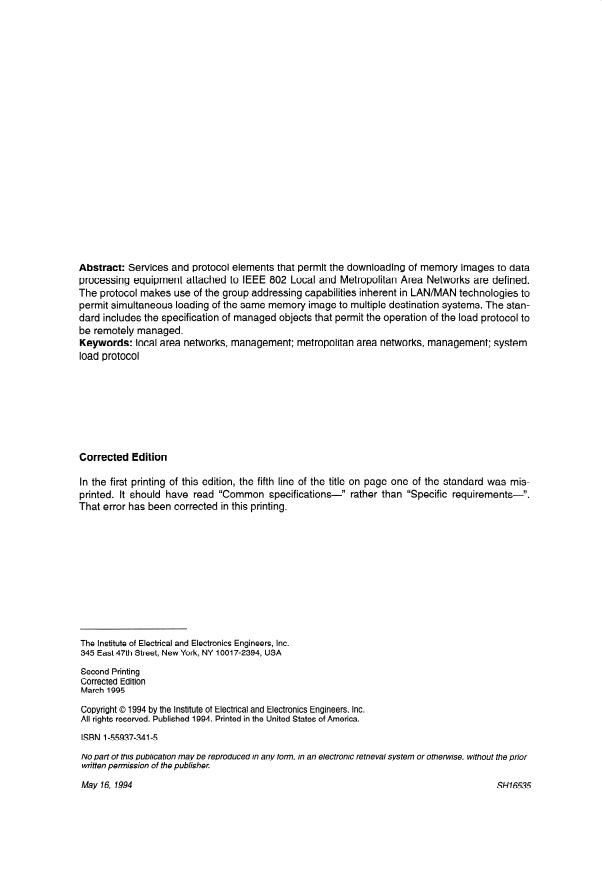Information technology — Telecommunications and information exchange between systems — Local and metropolitan area networks — Common specifications — Part 4: System load protocol