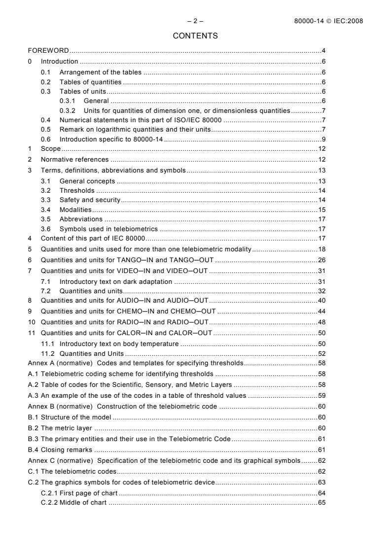 La Norme Internationale CEI 80000-14:2008 donne les noms, les symboles et les définitions des grandeurs et les unités employées en télébiométrique relative à la physiologie humaine. Cette partie de la CEI 80000 contient les grandeurs et les unités concernant les caractéristiques physiologiques, biologiques et comportementales qui pourraient engendrer des entrées et des sorties pour les systèmes télébiométriques d'identification ou de vérification (systèmes de reconnaissance), y compris les seuils de détection ou de sécurité déjà connus. Elle contient aussi les grandeurs et les unités concernant les effets de l'utilisation d'appareils télébiométriques sur les êtres humains. La Norme internationale CEI 80000-14 a été établie par le comité d'études 25 de la CEI: Grandeurs et unités, et leurs symboles littéraux en collaboration avec le TC 12 de l'ISO.