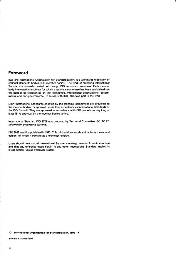IS0 2022 was first published in 1973. This third edition cancels and replaces the second