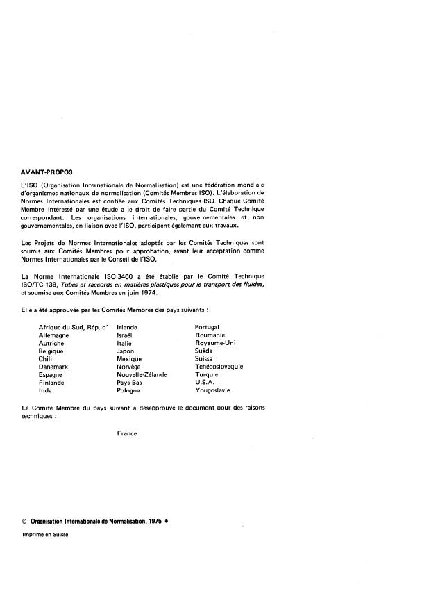 La Norme Internationale ISO 3460 a été établie par le Comité Technique