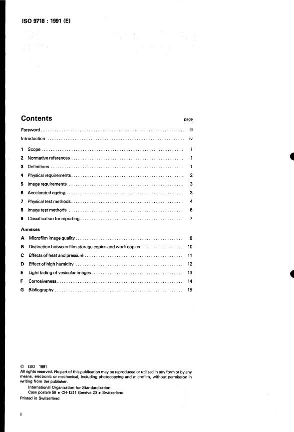 ISO 9718:1991 is a standard published by the International Organization for Standardization (ISO). Its full title is "Photography — Processed vesicular photographic film — Specifications for stability". This standard covers: Photography — Processed vesicular photographic film — Specifications for stability