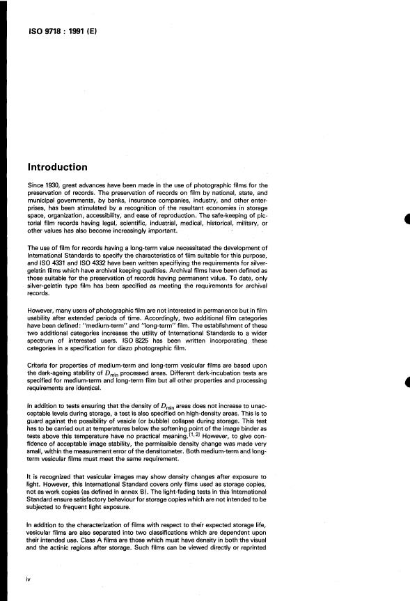 ISO 9718:1995 - Photography — Processed vesicular photographic film — Specifications for stability - Effective Date