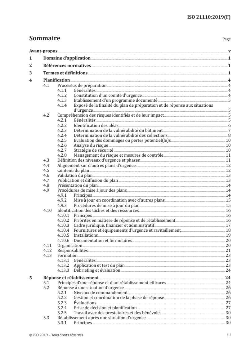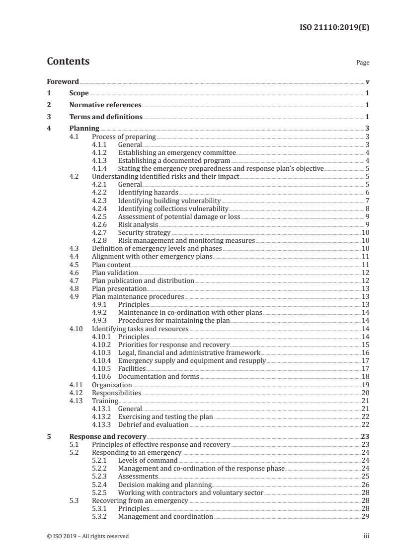 Keywords: ISO 21110:2019, ISO 21110, emergency preparedness and response, archives, libraries, museums, collection protection, disaster recovery, risk assessment, emergency plan, business continuity.