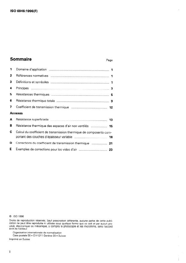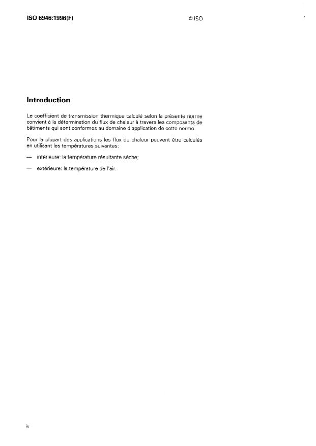ISO 6946:1996 - Composants et parois de bâtiments -- Résistance thermique et coefficient de transmission thermique -- Méthode de calcul