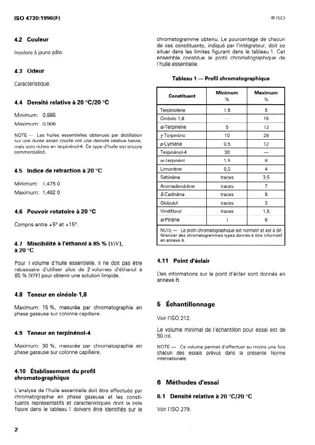 ISO 4730:1996 - Huile essentielle de Melaleuca, type terpinénol-4 (Huile essentielle de "Tea tree")