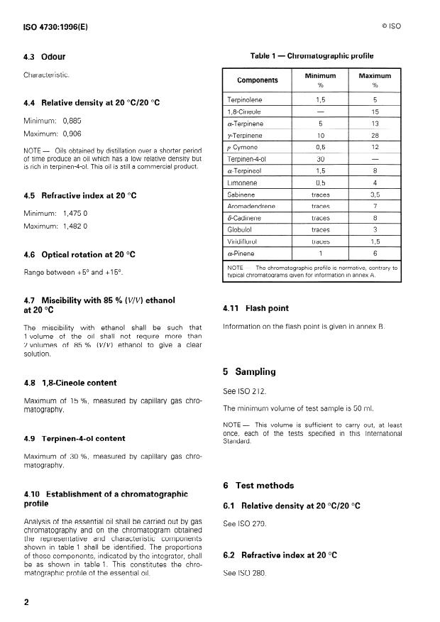 ISO 4730:1996 - Oil of Melaleuca, terpinen-4-ol type (Tea Tree oil)