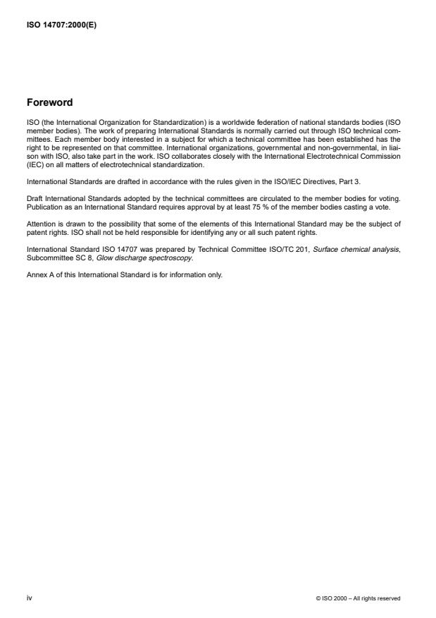 International Standard ISO 14707 was prepared by Technical Committee ISO/TC 201, Surface chemical analysis,