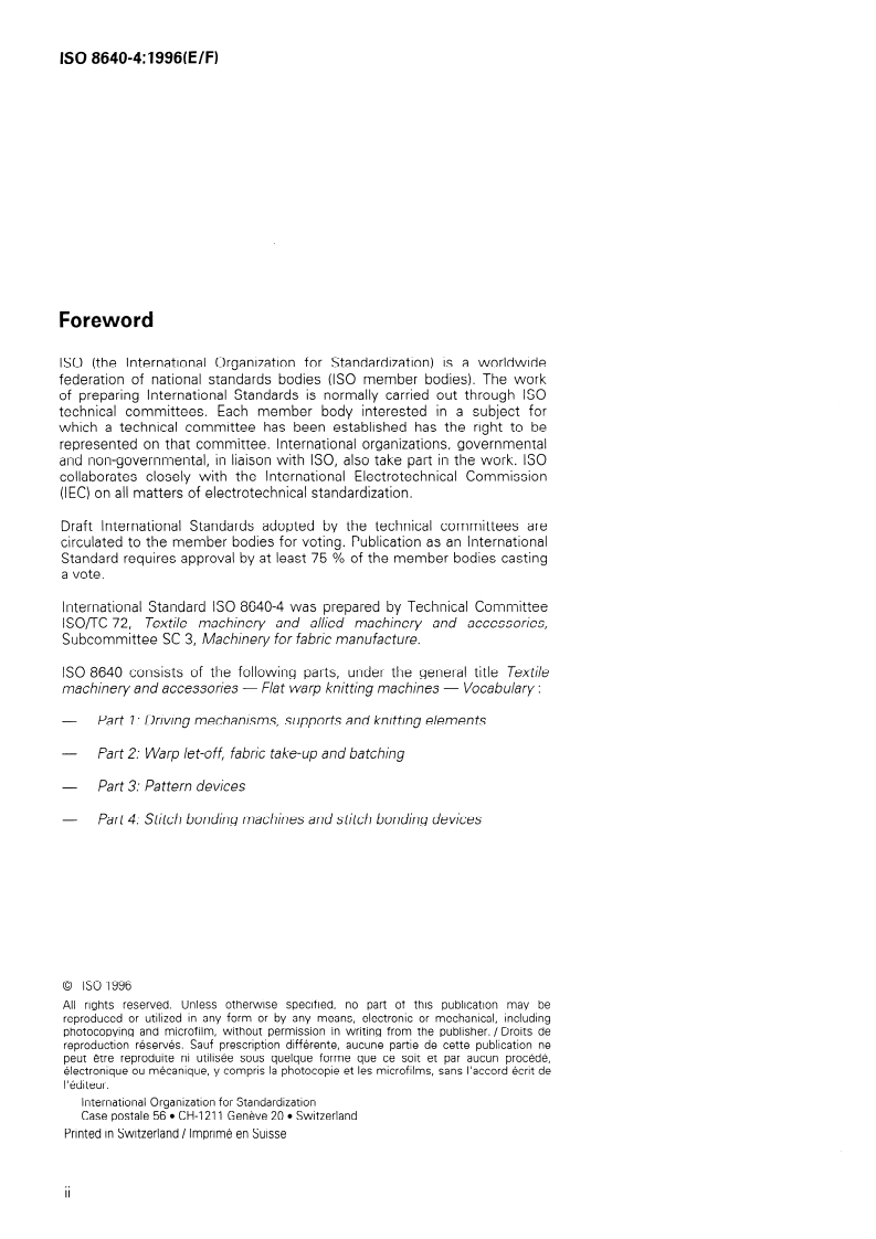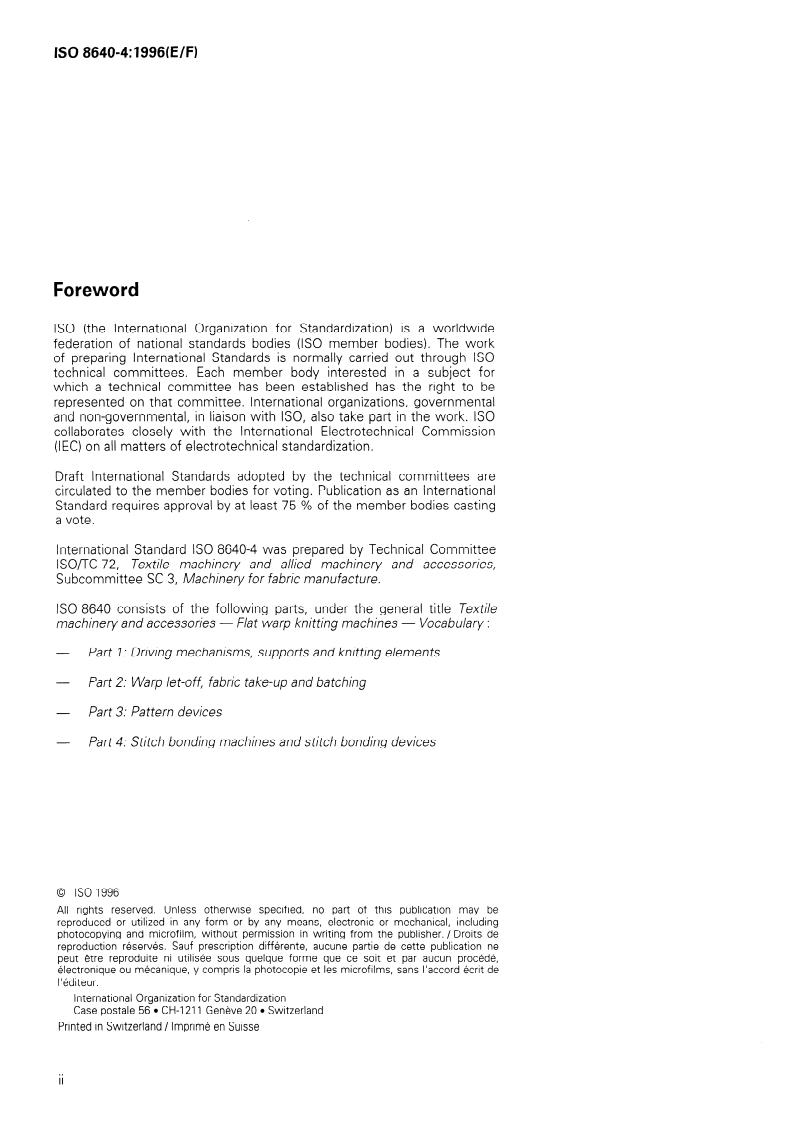 Part of the ISO 8640 series prepared by ISO/TC 72 (Textile machinery). Related parts include: