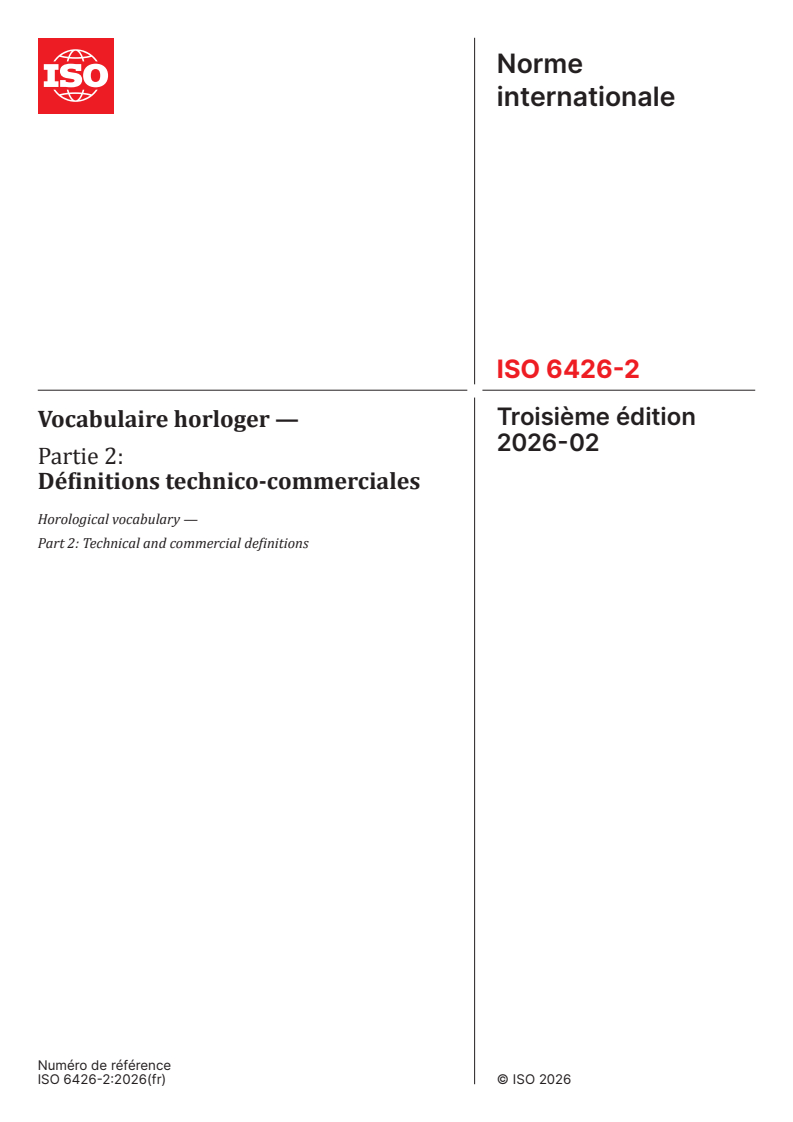 ISO 6426-2:2026 - Vocabulaire horloger — Partie 2: Définitions technico-commerciales