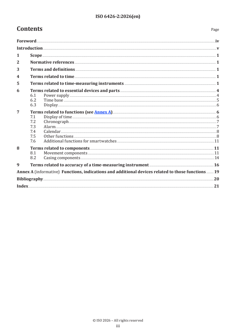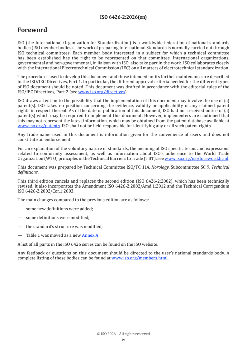 ISO 6426-2:2026 is a standard published by the International Organization for Standardization (ISO). Its full title is "Horological vocabulary — Part 2: Technical and commercial definitions". This standard covers: This document defines the principal terms used in horology. The terms and definitions apply to time-measuring instruments and related devices.