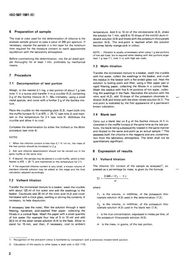 ISO 587:1981 - Solid mineral fuels -- Determination of chlorine using Eschka mixture