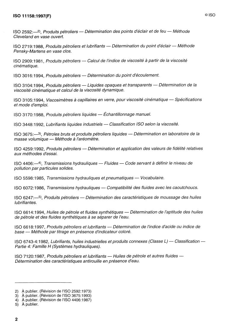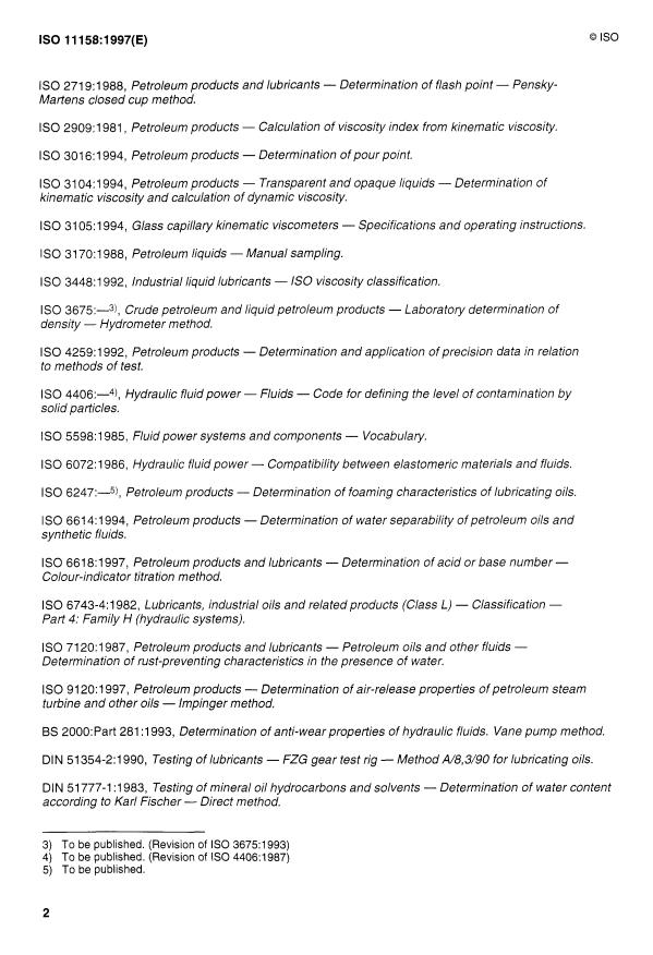 ISO 11158:1997 - Lubricants, industrial oils and related products (class L) — Family H (hydraulic systems) — Specifications for categories HH, HL, HM, HR, HV and HG Released:12/11/1997