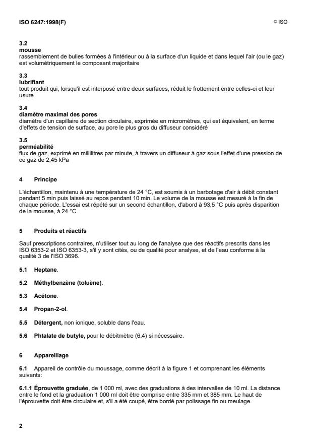 Keywords: ISO 6247:1998, foaming characteristics, lubricating oils, foaming tendency, foam stability, diffuser pore diameter, permeability, lubricant foam test.