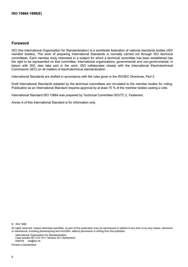 International Standard ISO 10664 was prepared by Technical Committee ISO/TC 2, Fasteners.