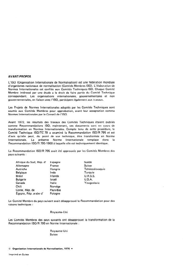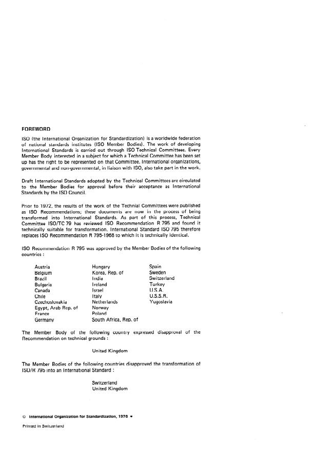 Committee lSO/TC 79 has reviewed IS0 Recommendation R 795 and found it