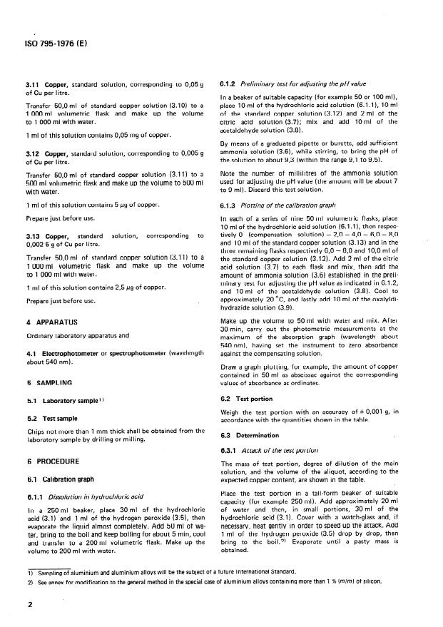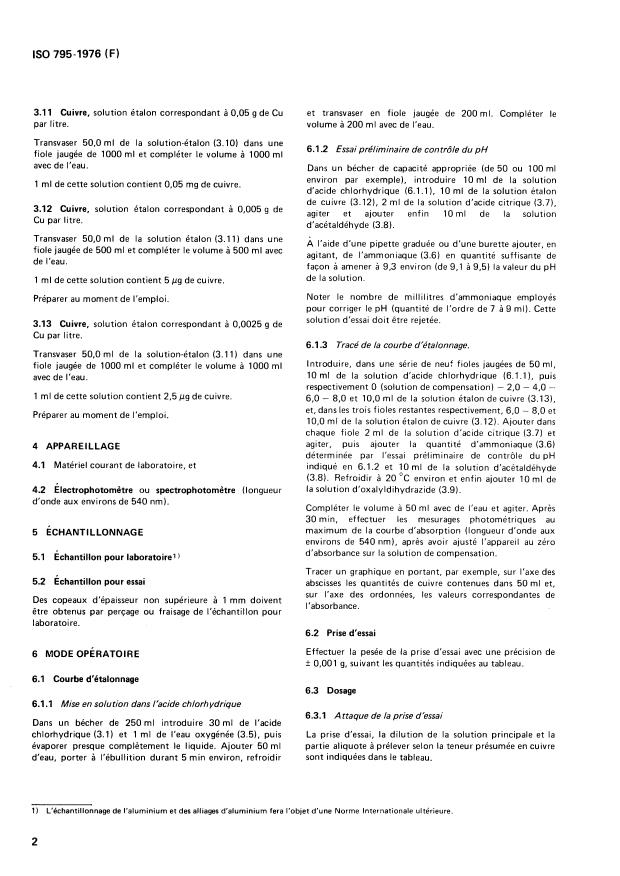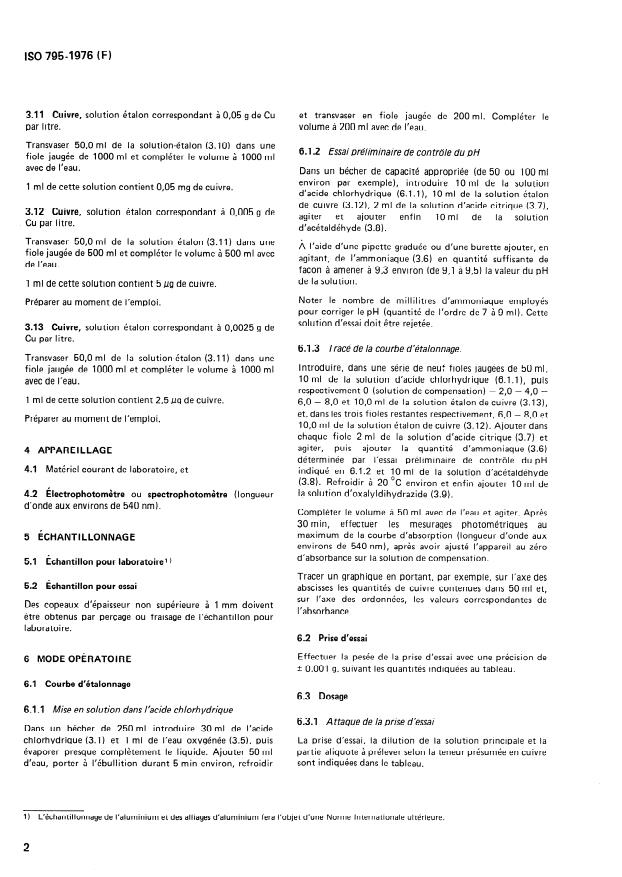 ISO 795:1976 - Aluminium and aluminium alloys -- Determination of copper content -- Oxalyldihydrazide photometric method
