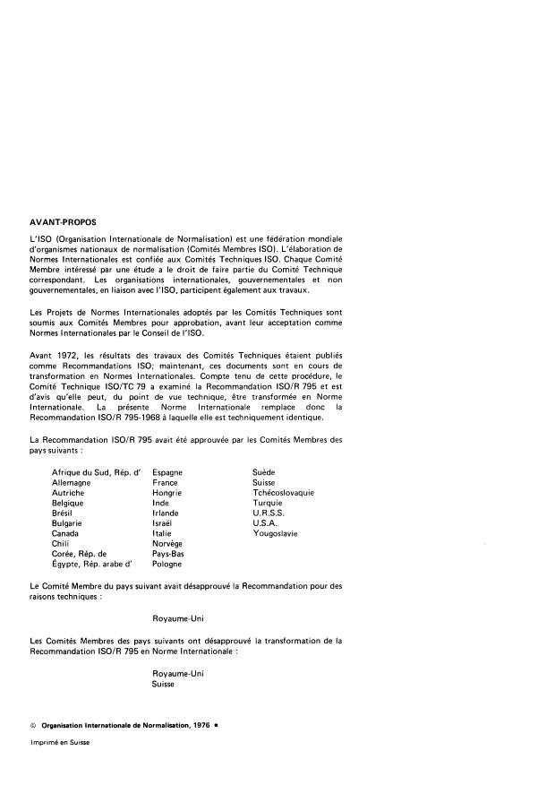 replaces IS0 Recommendation R 795-1968 to which it is technically identical.
