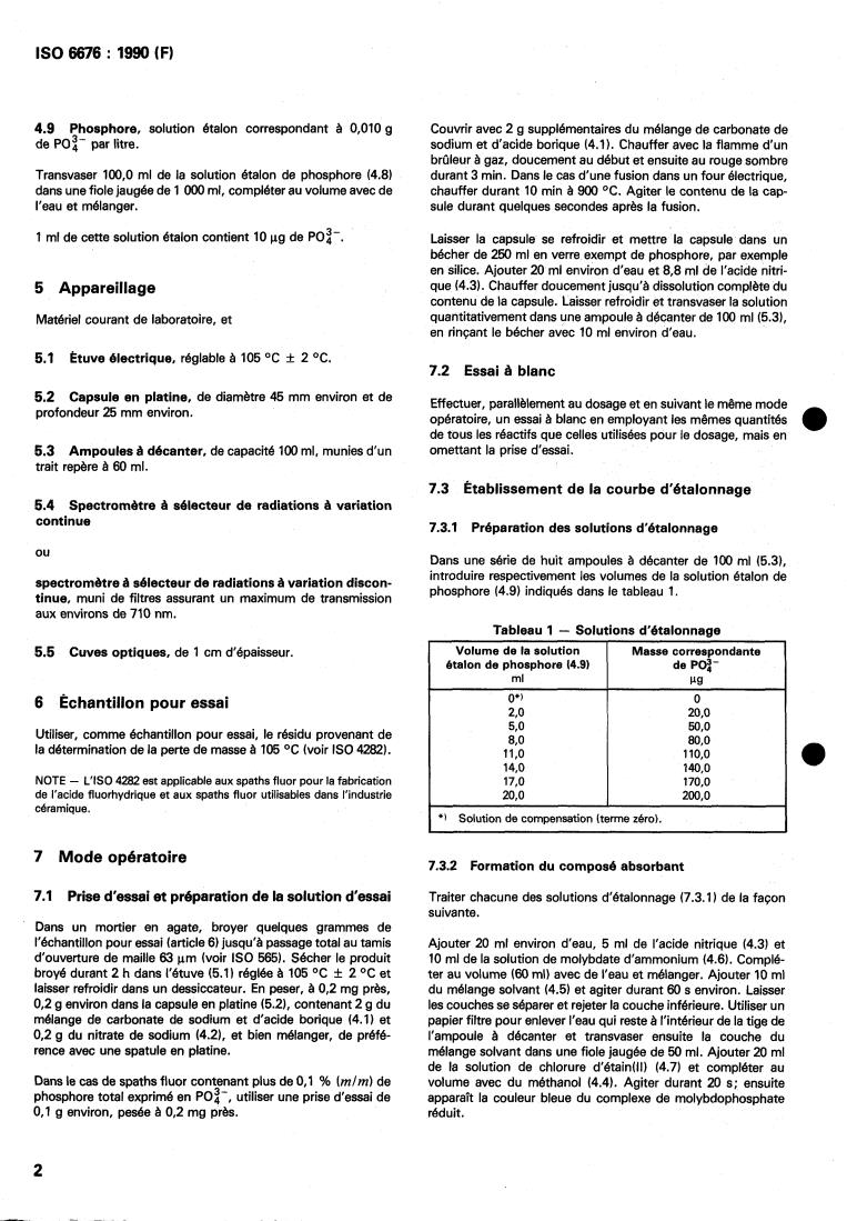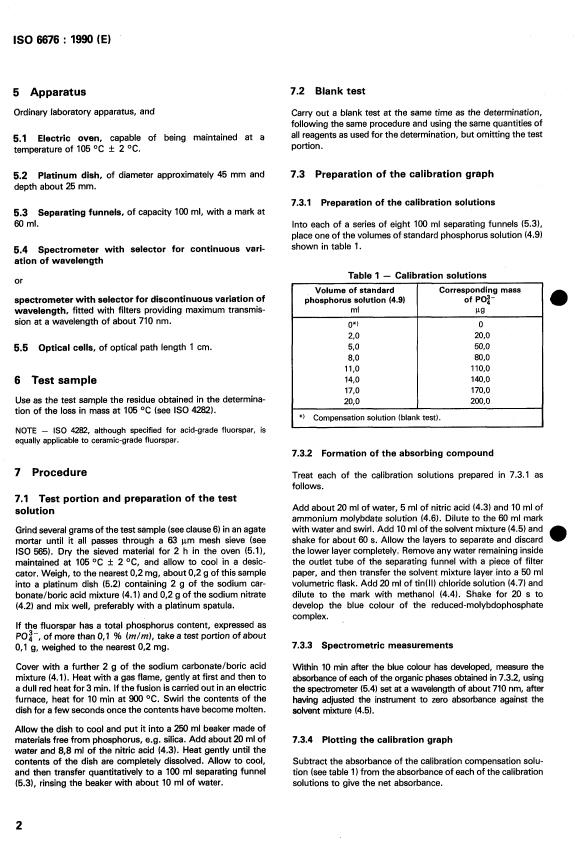 ISO 6676:1990 - Acid-grade and ceramic-grade fluorspar — Determination of total phosphorus content — Reduced-molybdophosphate spectrometric method Released:3/8/1990