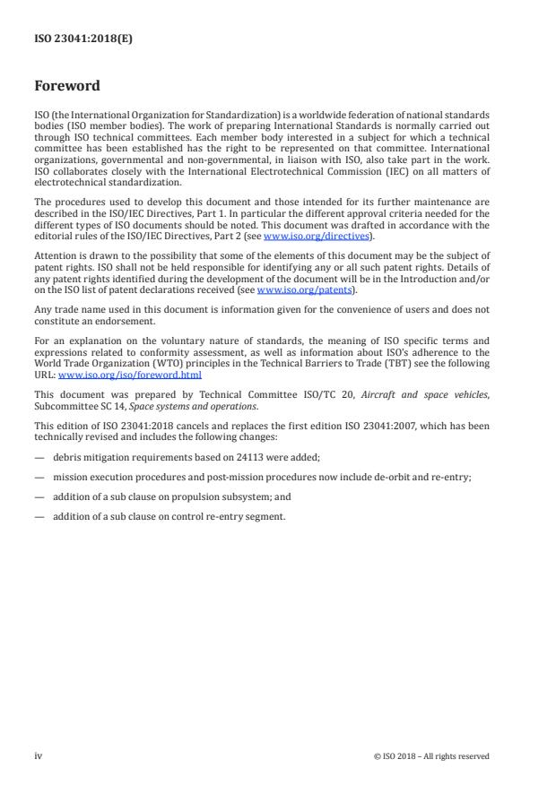 - The 2018 revision incorporates debris mitigation considerations aligned with ISO 24113 and was prepared by ISO/TC 20/SC 14 (Space systems and operations). It follows ISO/IEC Directives for development and maintenance.