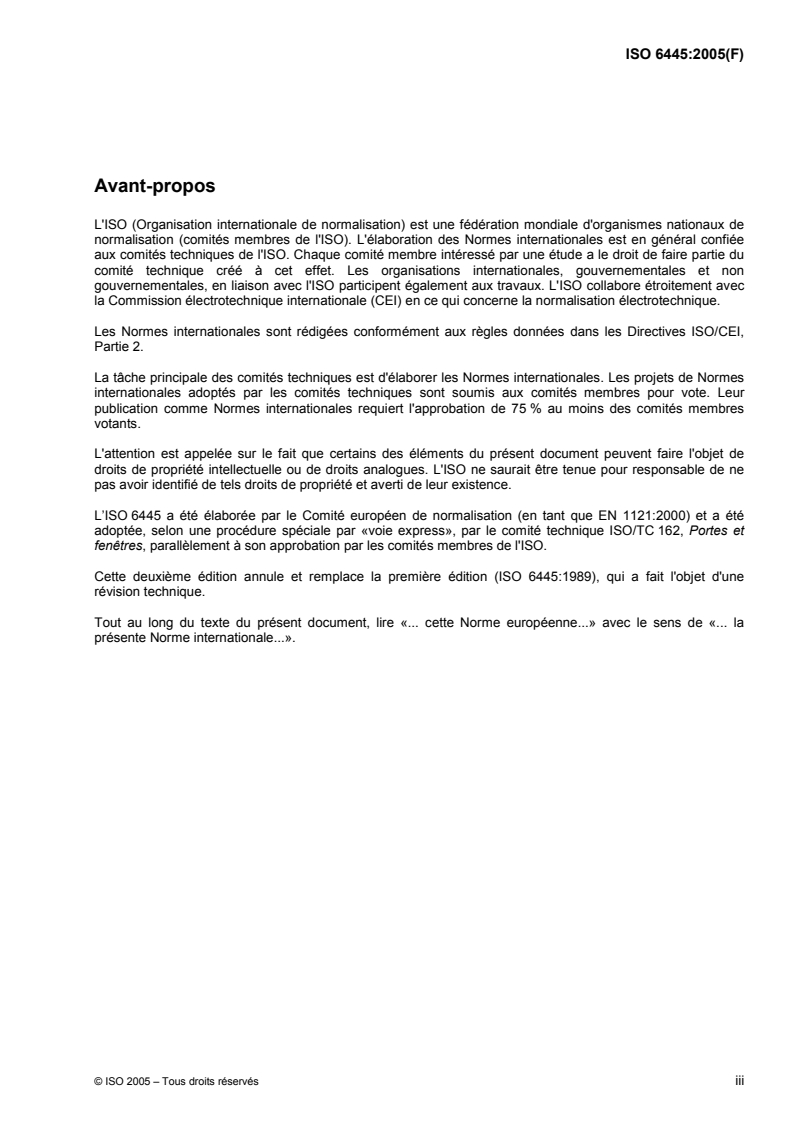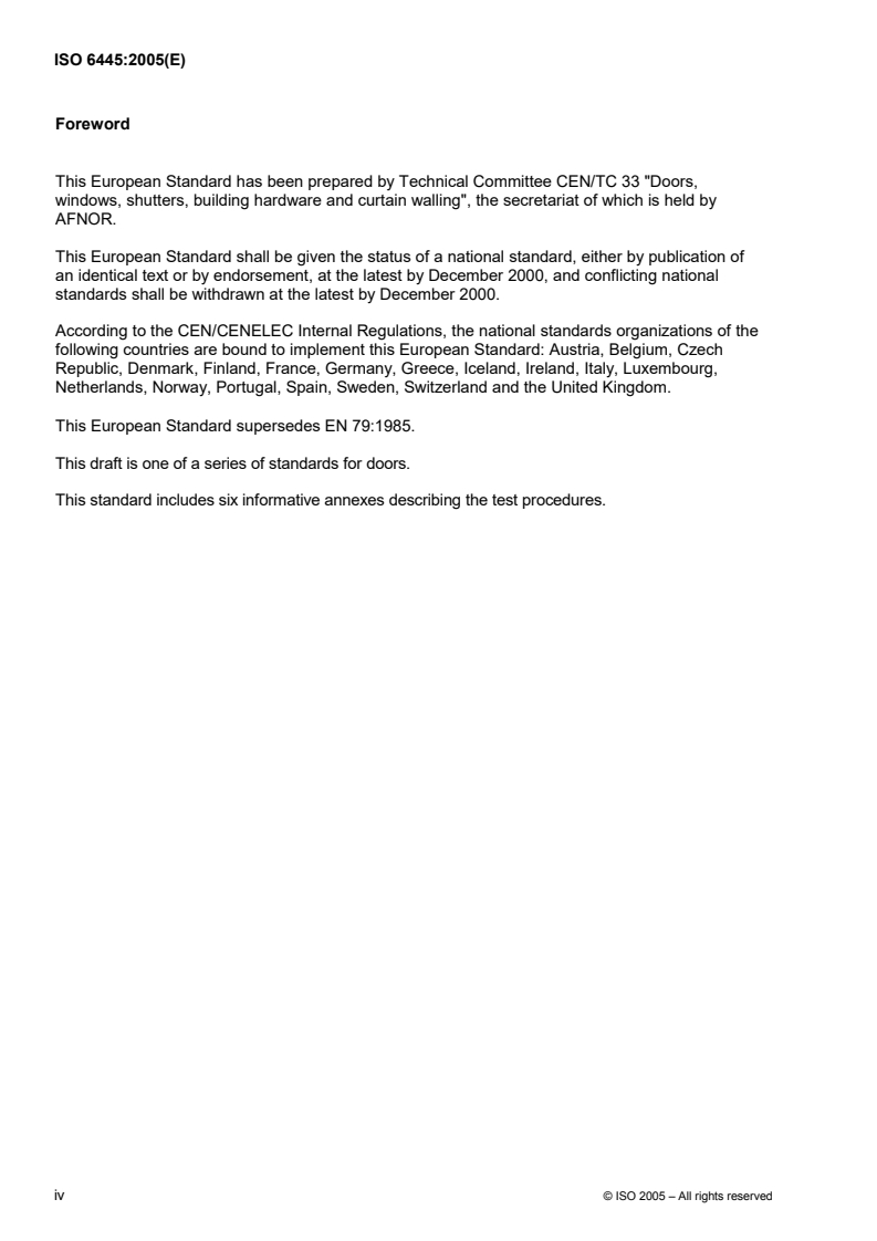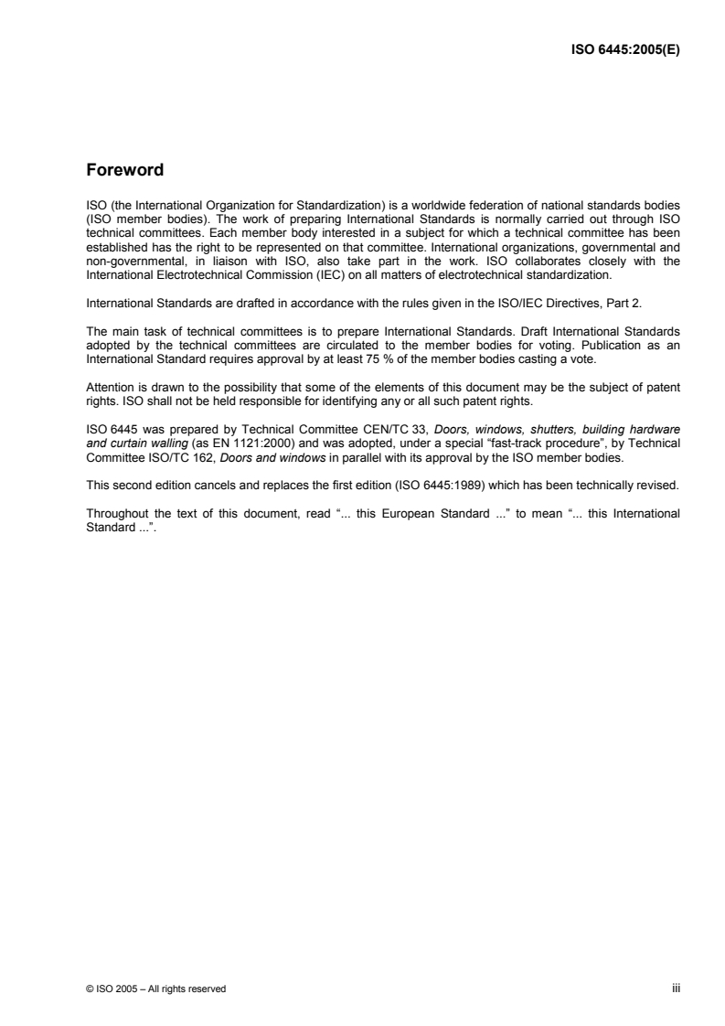 ISO 6445 was prepared by Technical Committee CEN/TC 33, Doors, windows, shutters, building hardware