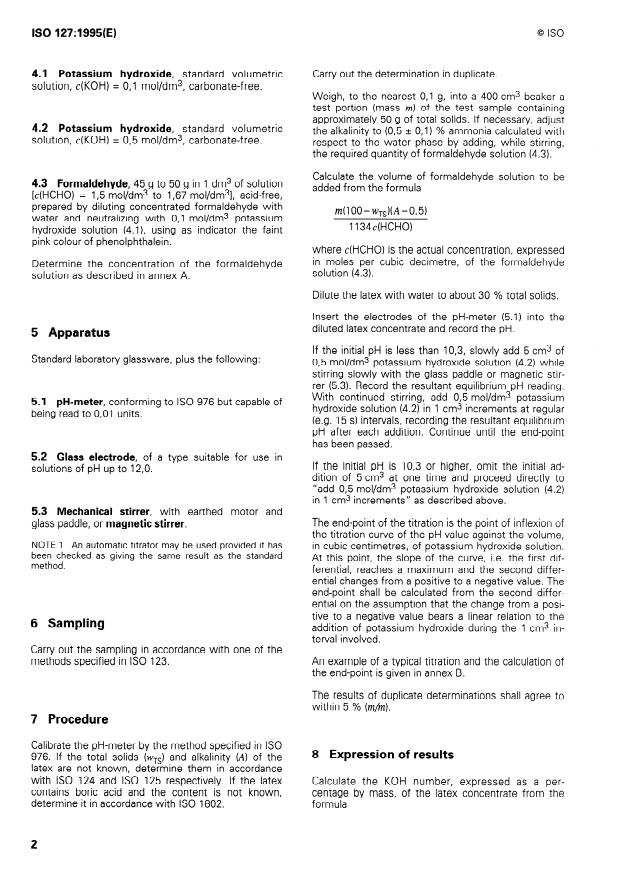 ISO 127:1995 - Rubber, natural latex concentrate -- Determination of KOH number