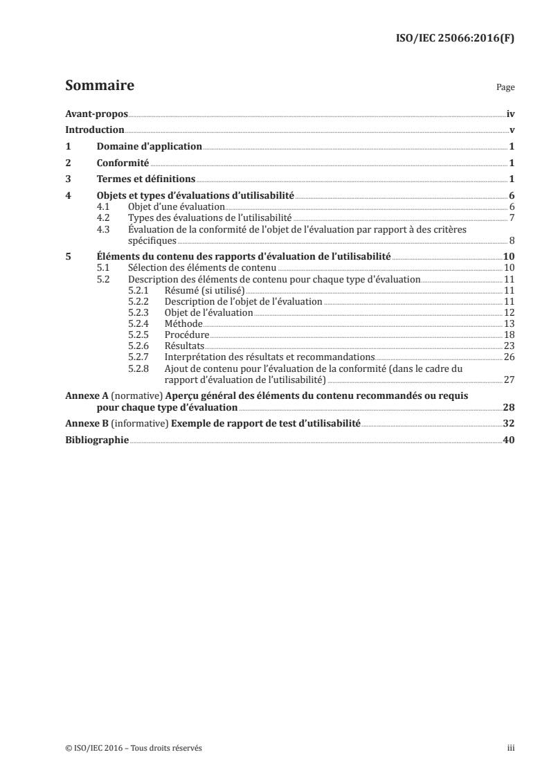 - Conformance rules: A report conforms to ISO/IEC 25066 when it contains all required content elements applicable to the chosen evaluation type, plus any selected optional elements.