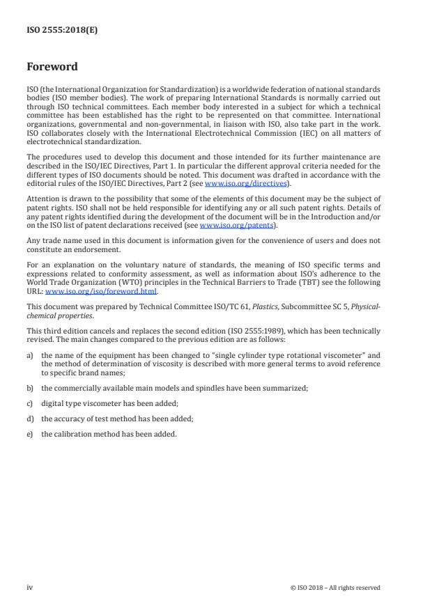 ISO 2555:2018 - Plastics -- Resins in the liquid state or as emulsions or dispersions -- Determination of apparent viscosity using a single cylinder type rotational viscometer method
