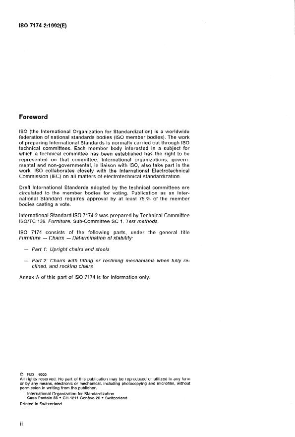 ISO 7174-2:1992 - Furniture -- Chairs -- Determination of stability