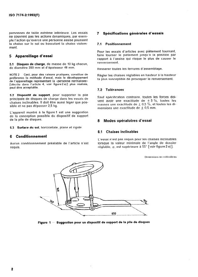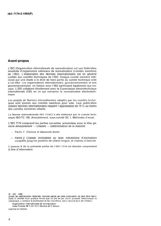 ISO 7174-2:1992 - Ameublement -- Chaises -- Détermination de la stabilité