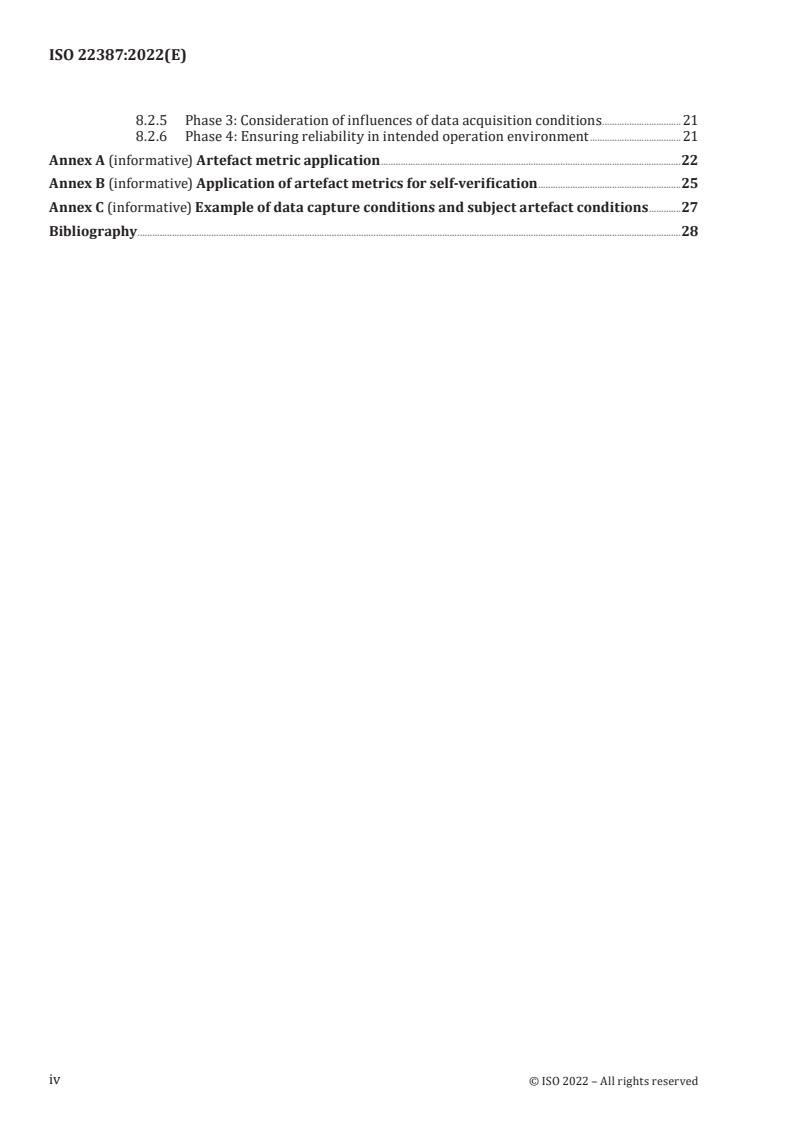 - ISO 22383 (referenced in ISO 22387) - for broader guidance when artefact metrics are used within authentication solutions.
