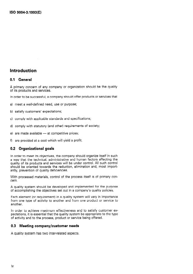 ISO 9004-3:1993 is a standard published by the International Organization for Standardization (ISO). Its full title is "Quality management and quality system elements — Part 3: Guidelines for processed materials". This standard covers: Quality management and quality system elements — Part 3: Guidelines for processed materials