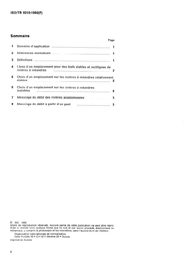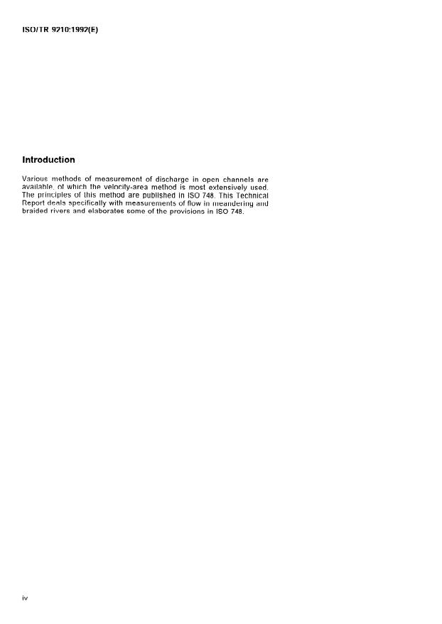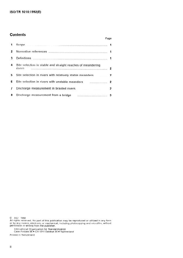 ISO/TR 9210:1992 is a technical report published by the International Organization for Standardization (ISO). Its full title is "Measurement of liquid flow in open channels — Measurement in meandering rivers and in streams with unstable boundaries". This standard covers: Provides guidelines for discharge measurements (especially for site selection) in meandering and braided rivers, and from bridges, following the provisions of ISO 748.
