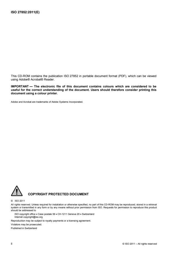 This CD-ROM contains the publication ISO 27852 in portable document format (PDF), which can be viewed