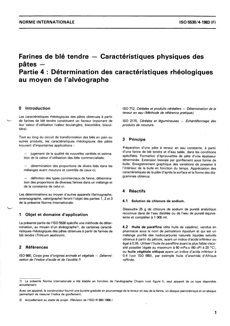 ISO 5530-4:1983 - Wheat flour — Physical characteristics of doughs — Part 4: Determination of rheological properties using an alveograph Released:6/1/1983
