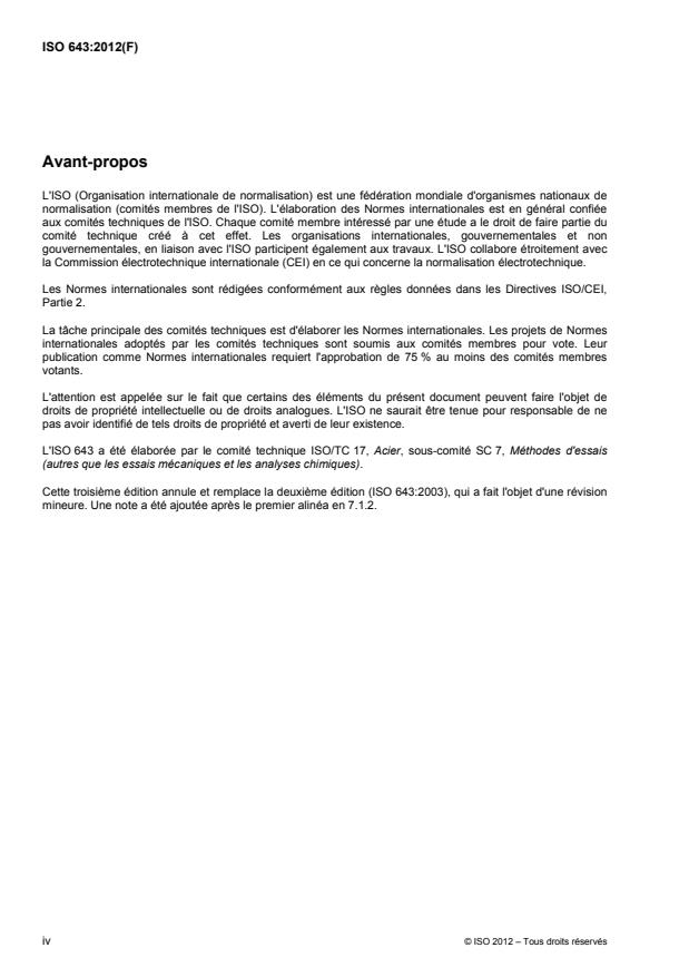 ISO 643 was prepared by Technical Committee ISO/TC 17, Steel, Subcommittee SC 7, Methods of testing