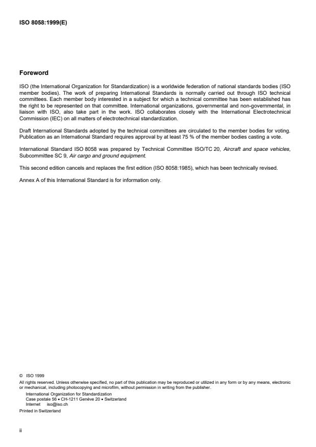 International Standard ISO 8058 was prepared by Technical Committee ISO/TC 20, Aircraft and space vehicles,