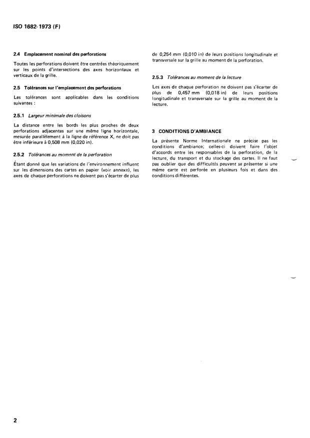 ISO 1682:1973 - Traitement de l'information -- Cartes perforées en papier a 80 colonnes -- Dimensions et emplacement des perforations rectangulaires