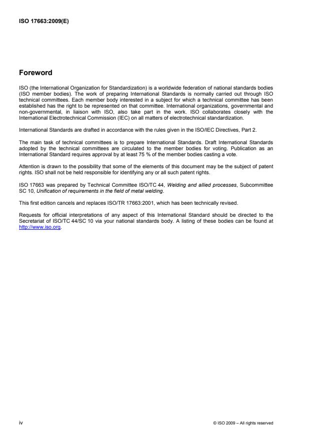 ISO 17663:2009 is a standard published by the International Organization for Standardization (ISO). Its full title is "Welding — Quality requirements for heat treatment in connection with welding and allied processes". This standard covers: ISO 17663:2009 provides quality requirements for heat treatment in air or controlled atmospheres carried out in workshops and on site in connection with welding and forming. It applies mainly to ferritic steels, but can be used for other materials, as appropriate. ISO 17663:2009 provides guidance for manufacturers that perform heat treatment or produce heat-treated products or components. ISO 17663:2009 can also be used as a basis for assessing the manufacturer in respect to its heat treatment capability. ISO 17663:2009 is intended to be a flexible framework for the control of heat treatment processes. The fulfilment of a requirement can be waived where justification can be provided that a specific requirement is not applicable to a specific process.